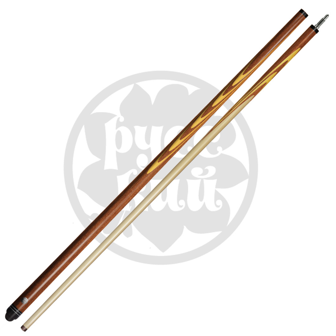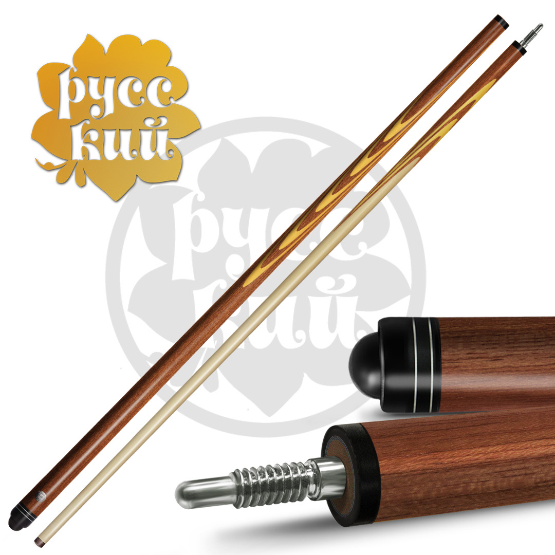 Кий «РУССКИЙ» - правильный кий, которому можно доверить свою игру. Бренд «РУССКИЙ» уже более 8 лет на рынке, за этот срок он собрал массу положительных откликов не только от покупателей-любителей, но и профессиональных именитых спортсменов! Постоянно расширяя линейку и улучшая качество своей продукции, сегодня мы представляем обновленные модели, соответствующие «золотому стандарту» киестроения! Запиленные новым способом кии «РУССКИЙ» обладают высокими пружинящими свойствами, одновременно плотные и стабильные, они имеют идеальную геометрию. В киях «РУССКИЙ» запил стал тоньше и длиннее, увеличенные лепестки придают большую жесткость кию и уменьшают вибрацию при ударе. Такой длинный запил сложен в реализации, зато обеспечивает хорошую плотность игровому инструменту. Длинна запила в среднем у склеенной заготовки составляет 33 см, а в готовом изделии 26 см. Запилы цельные, не склеенные, что тоже работает на повышение плотности и стабильности кия. Тонкие заготовки без склейки из разноцветных пород дерева собираются четко один к одному, образуя ажурный рисунок. Эффектные узоры не только придают изящный вид, но и совершенствуют игровые характеристики кия. Новая структура кия абсолютно монолитна и приближена к естественной структуре дерева. В изготовлении шафта киев используется только высококачественный 4-х сторонний граб. Это жесткое по структуре дерево, идеально подходящее для ударной части кия по своим физическим свойствам. От шафта зависит качество игры, здесь аккумулируется энергия, позволяющая при ударе «выстрелить» шар. Геометрия шафта кия «РУССКИЙ» кроме идеальной прямолинейности имеет определенную заданную жесткость. Здесь соблюден важный баланс между «жесткостью» и «эластичностью». В киях «РУССКИЙ» обновлены замки, сейчас они сделаны из двух видов металла, что способствует меньшему износу и большему сроку службы изделия. Разные металлы используются намеренно, разность в твердости обусловлена технической особенностью киестроения. Надежный замок гарантирует прочное соединение ударного наконечника и шафта, плотное соединение в месте стыка, обеспечивая идеальную скрутку и монолитность инструмента при игре. Финишная обработка этих киев тоже вобрала в себя все самые лучшие традиции. «РУССКИЙ» полируется особым способом и специальным составом, который наносится в несколько этапов и слоев. Поверхность дорабатывается до зеркального блеска, при этом кий не скользит в руке. Покрытие кия прочно и долговечно, а кий надежно защищен. Все модели кия «РУССКИЙ» проходят строгий технологический контроль на всех стадиях изготовления, ручная доводка каждого кия высокопрофессиональными мастерами обеспечивает неизменно высокие игровые качества профессионального уровня. Кии «РУССКИЙ» - кии для РУССКОГО бильярда, сделанные в лучших традициях РУССКИХ мастеров!