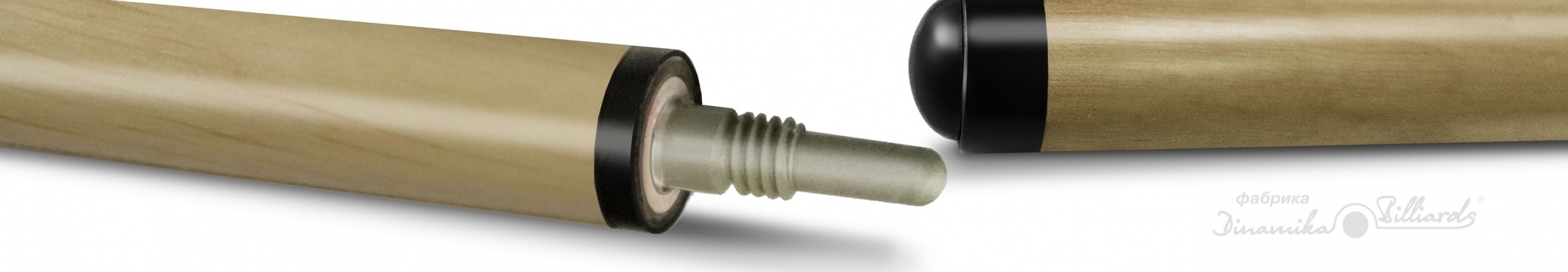 Для изготовления шафта практически во всех моделях бильярдных киев используется только высококачественный граб. Это жесткое по структуре и в то же время эластичное дерево идеальным образом подходит для изготовления данной части инструмента. Материалы, используемые для турняков, довольно разнообразны. В отделке дорогих моделей применяются ценные породы дерева – палисандр, венге и эбен. Для серийных моделей используются такие классические сорта как амарант, падук, лайсвуд, ятоба, «черный граб». В двусоставных киях установлены специальные замки из прочного полимерного материала – собственная разработка Фабрики. Соединяя турняк и шафт, эта деталь обеспечивает идеальную скрутку, а также участвует в процессе замедления энергии, гася колебания, идущие в тыльную часть турняка, где уже находится груз. Использование цельного лепестка без склейки в построении кия обеспечивает стабильность, прочность, устойчивость изделия к искривлению.