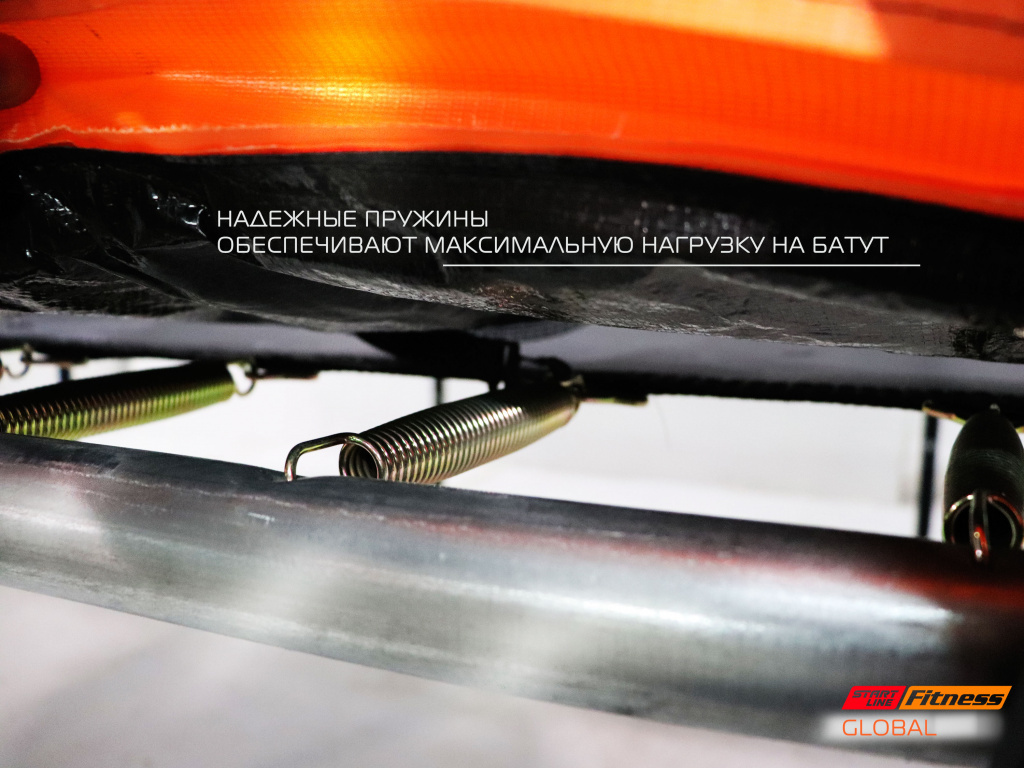 Батут GLOBAL SLF надежен,nbsp;nbsp;безопасен и долговечен. Прочная стальная рама с 4-мя опорами обеспечивает сбалансированный контакт с поверхностью. Батут максимально устойчив к переворачиванию. Рама и стойки оцинкованы снаружи и внутри в целях предотвращения коррозии. Материал прыжковой поверхности - плотная ткань ПВХ, устойчива к УФ излучению. Плотная сетка крепится к верхним стойкам. Стойки имеют мягкое покрытие из полиэтиленового пено-материала и защитные чехлы, что обеспечивает максимальную безопасность пользователю.