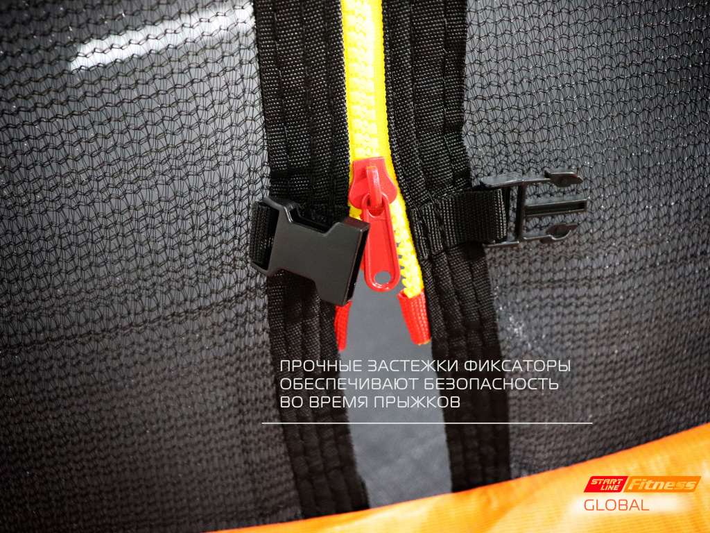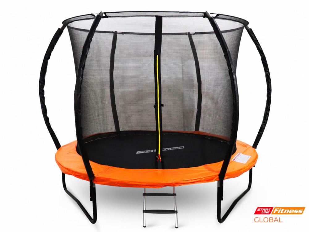 Батут GLOBAL SLF надежен, безопасен и долговечен. Прочная стальная рама с 3-мя опорами обеспечивает сбалансированный контакт с поверхностью. Батут максимально устойчив к переворачиванию. Рама и стойки оцинкованы снаружи и внутри в целях предотвращения коррозии. Материал прыжковой поверхности - плотная ткань ПВХ, устойчива к УФ излучению. Плотная сетка крепится к верхним стойкам. Стойки имеют мягкое покрытие из полиэтиленового пено-материала и защитные чехлы, что обеспечивает максимальную безопасность пользователю. В комплект входит удобная лестница с пластиковыми ступенями.