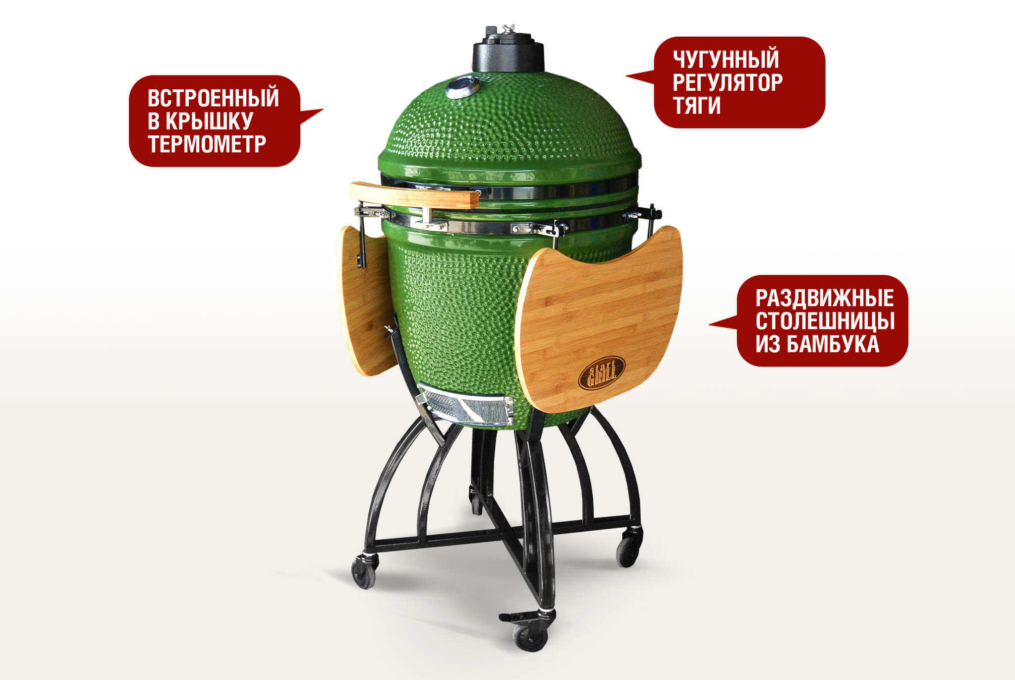 Раздвижные столешницы, транспортировочные колеса, решетка-гриль