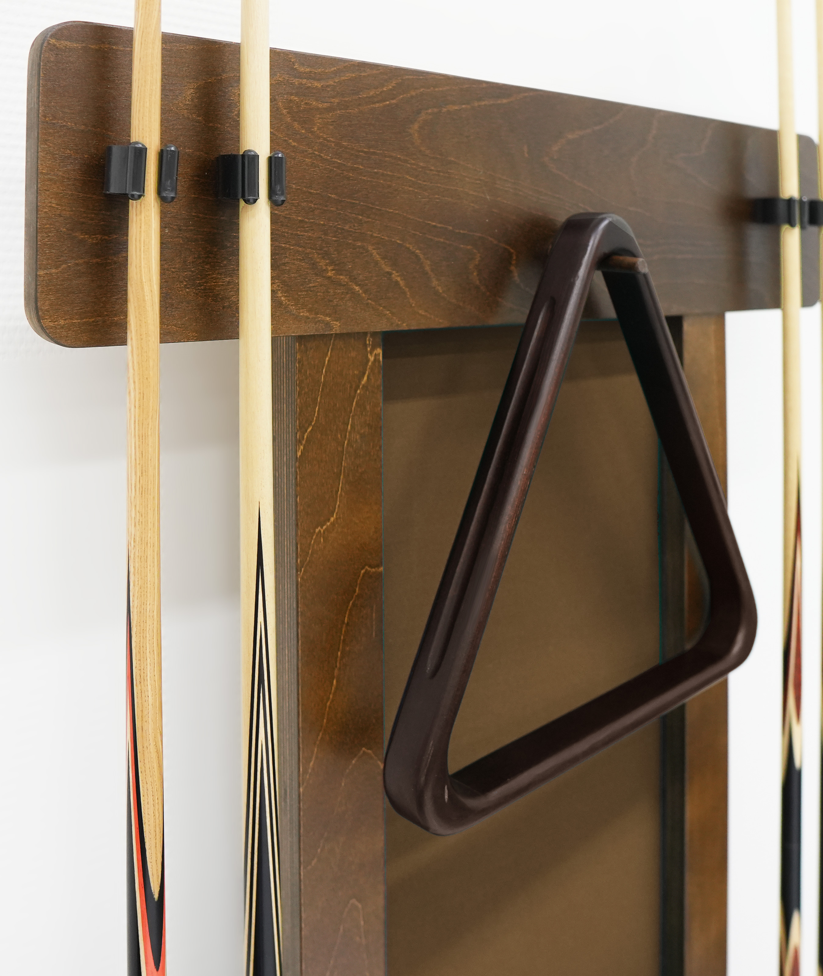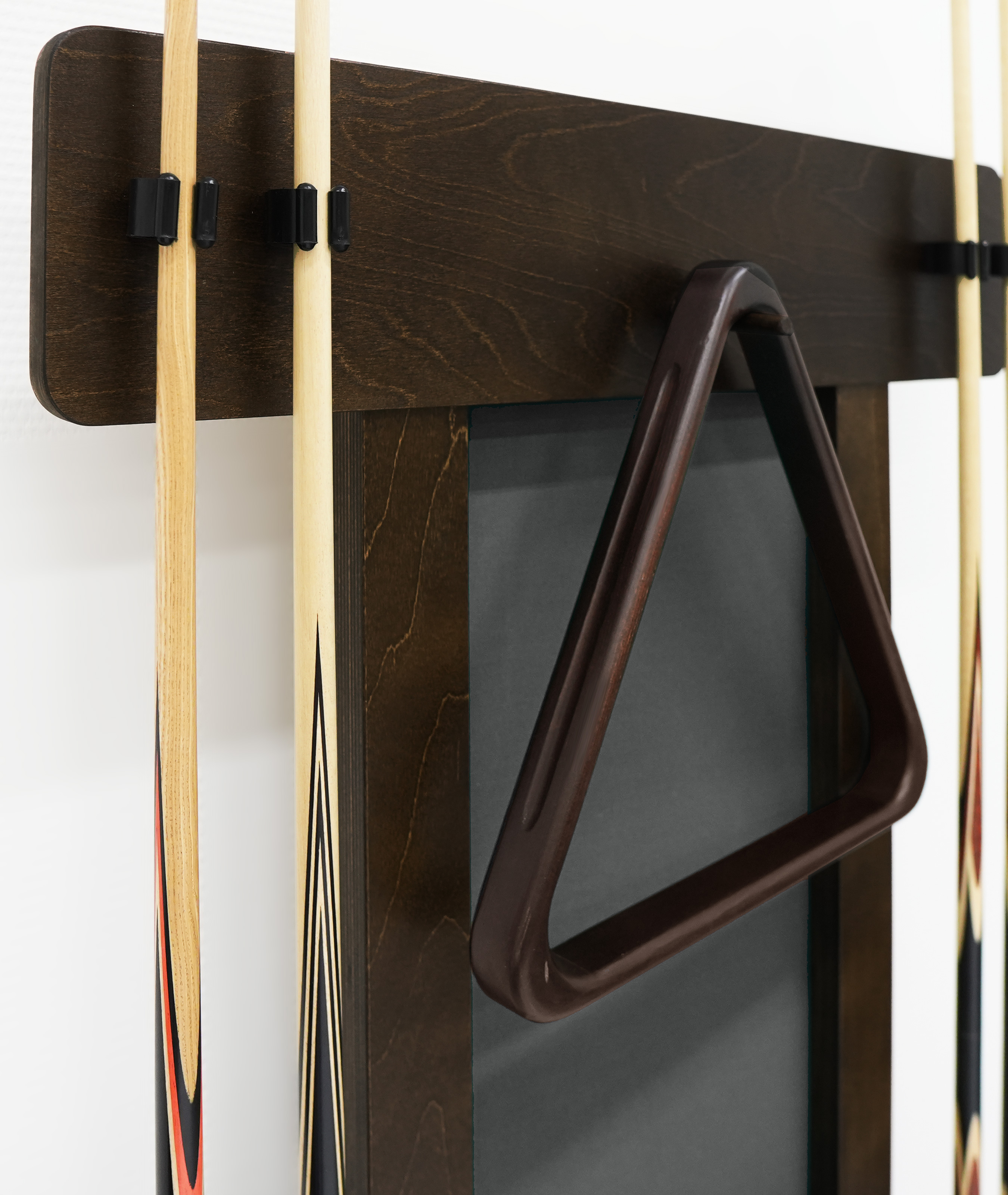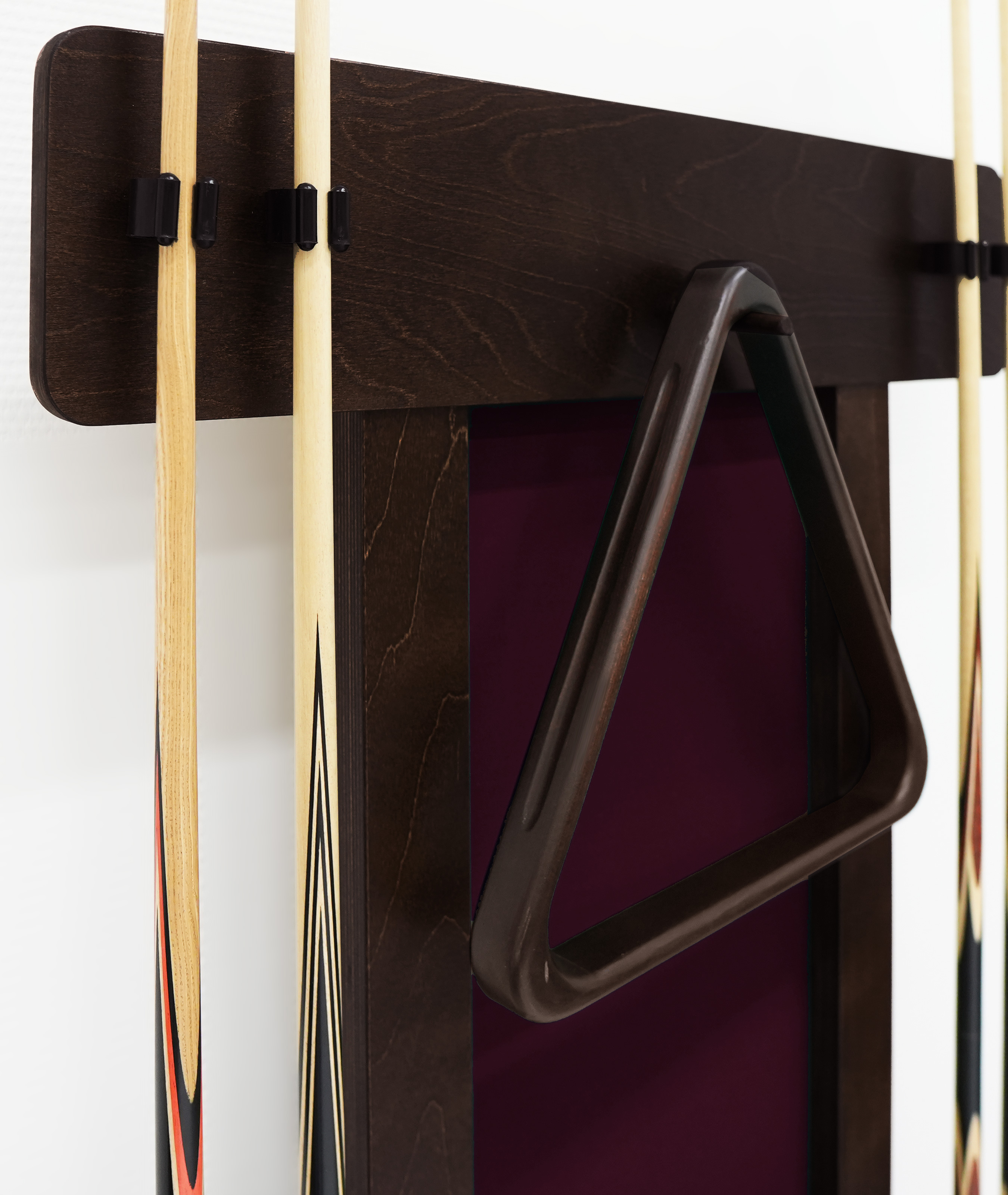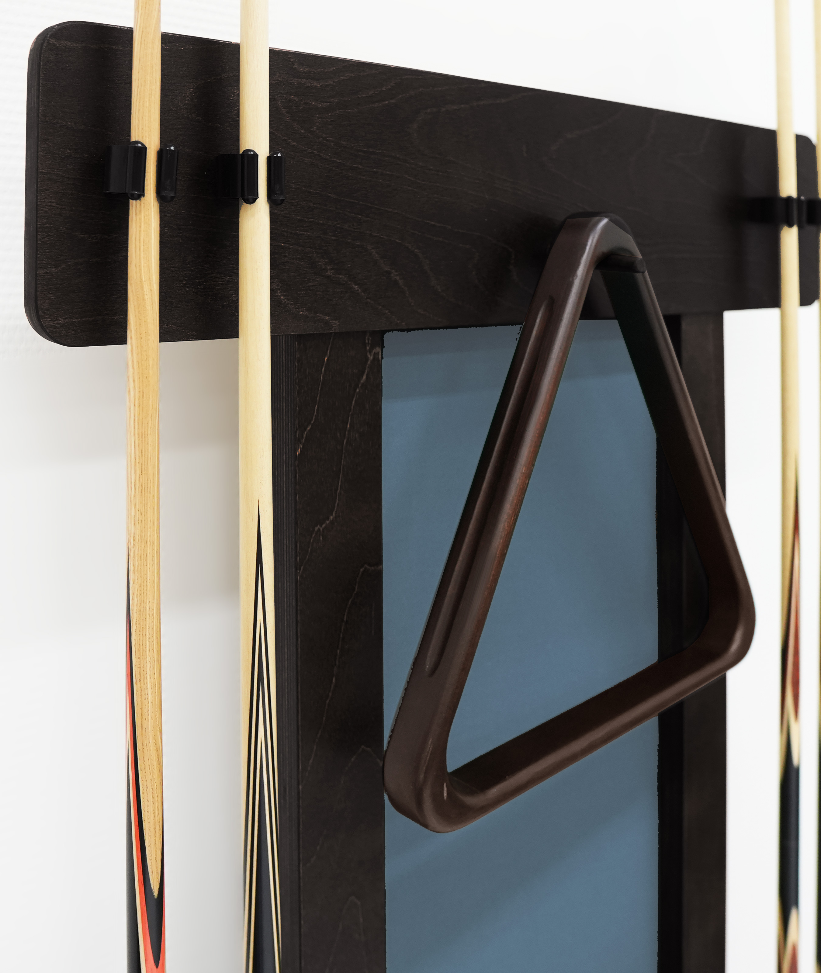 Киевница «Аталанта» — это идеальное сочетание функциональности, надежности и элегантного дизайна для бильярдной комнаты, клуба или игрового пространства. Модель изготовлена из высококачественной фанеры, обеспечивающей прочность и долговечность. Стенка и внутренние отделения для установки киев выстланы сукном, которое надежно фиксирует кии и бережно защищает шары от сколов и царапин. Благодаря настенному размещению киевница «Аталанта» экономит ценное пространство в помещении, оставляя игровую зону свободной. Четкие линии, классическая форма и богатая палитра выкрасок делают киевницу не просто аксессуаром, а частью интерьера. «Аталанта» позволяет разместить все необходимое для комфортной игры: 4 кия, полный комплект шаров, треугольник и мелкие аксессуары для игрока. Дополните бильярдную зону предметом, демонстрирующим серьезный подходе к игре и чувство стиля. Настенная киевница «Аталанта» — идеальное решение для домашних бильярдных комнат, частных спортивных клубов и баров.