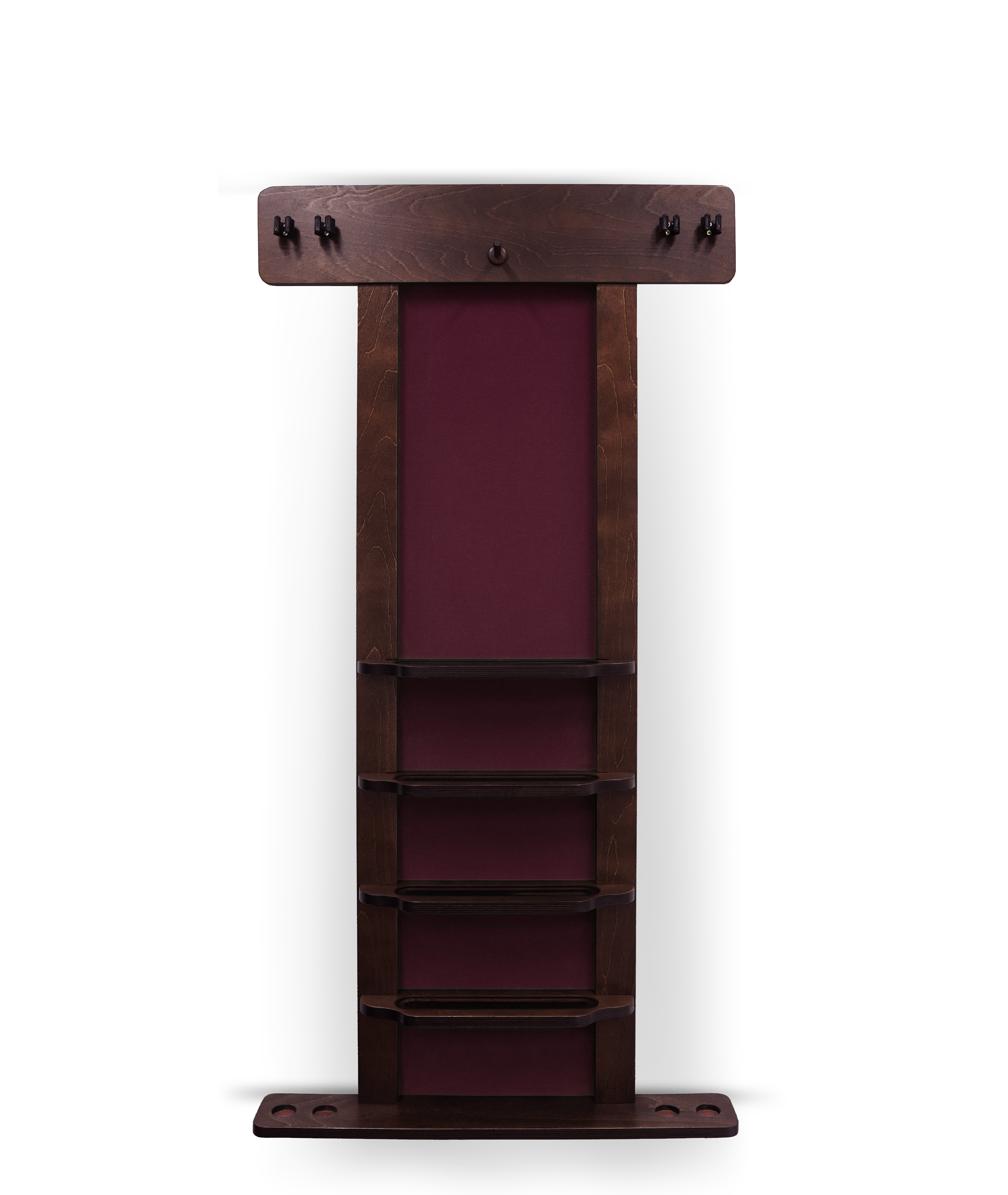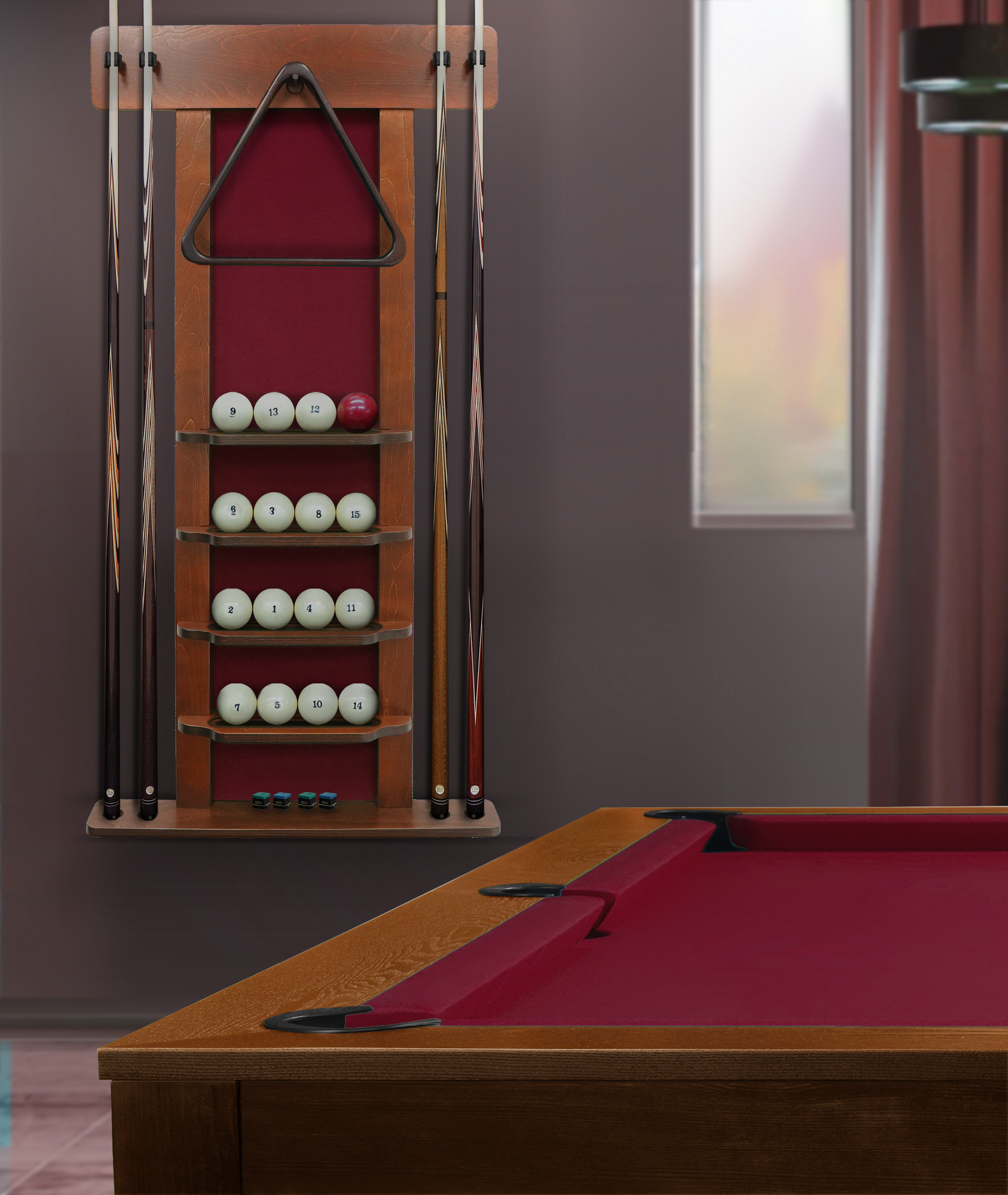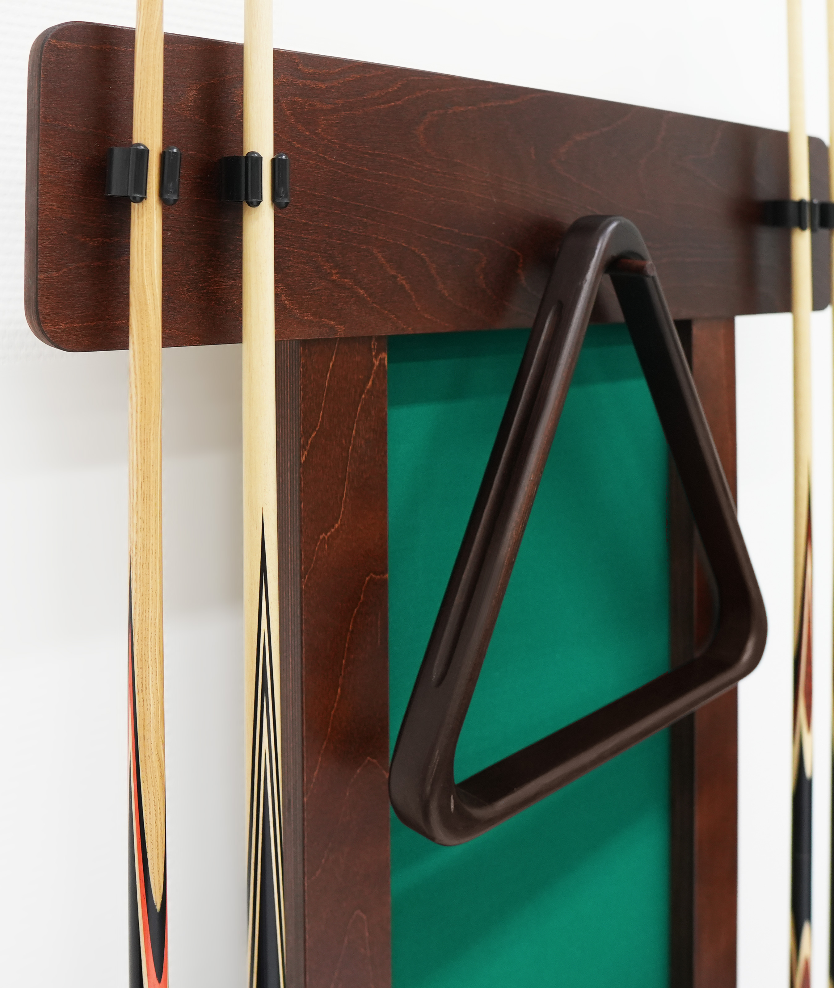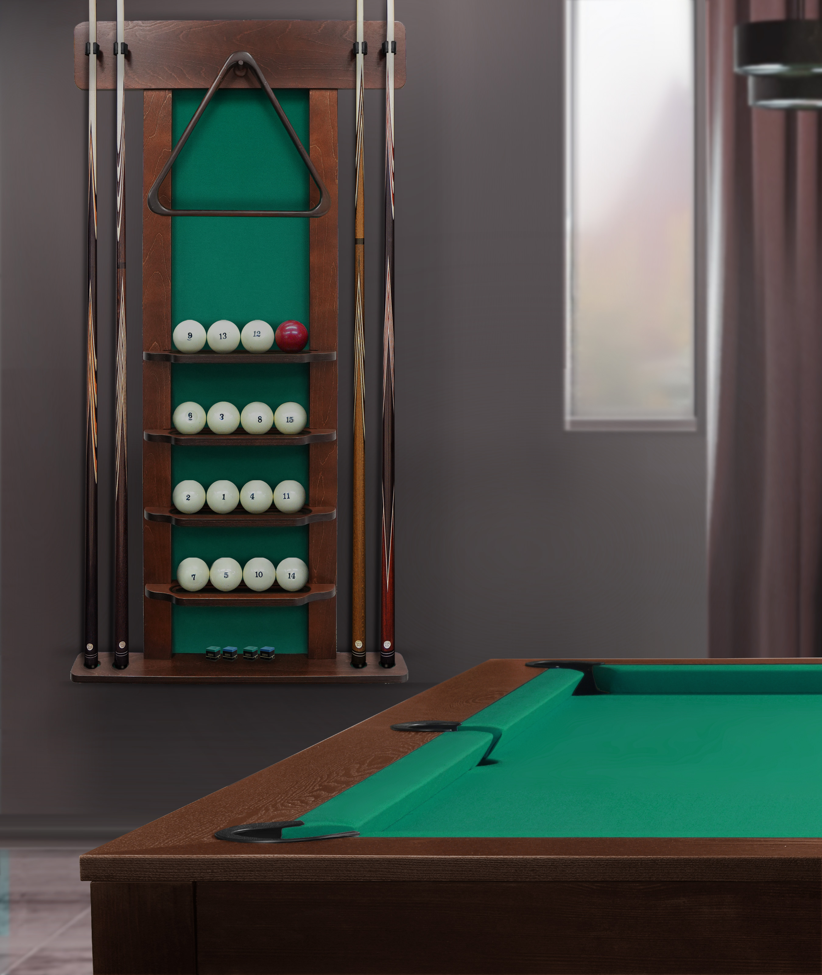 Киевница «Аталанта» — это идеальное сочетание функциональности, надежности и элегантного дизайна для бильярдной комнаты, клуба или игрового пространства. Модель изготовлена из высококачественной фанеры, обеспечивающей прочность и долговечность. Стенка и внутренние отделения для установки киев выстланы сукном, которое надежно фиксирует кии и бережно защищает шары от сколов и царапин. Благодаря настенному размещению киевница «Аталанта» экономит ценное пространство в помещении, оставляя игровую зону свободной. Четкие линии, классическая форма и богатая палитра выкрасок делают киевницу не просто аксессуаром, а частью интерьера. «Аталанта» позволяет разместить все необходимое для комфортной игры: 4 кия, полный комплект шаров, треугольник и мелкие аксессуары для игрока. Дополните бильярдную зону предметом, демонстрирующим серьезный подходе к игре и чувство стиля. Настенная киевница «Аталанта» — идеальное решение для домашних бильярдных комнат, частных спортивных клубов и баров.