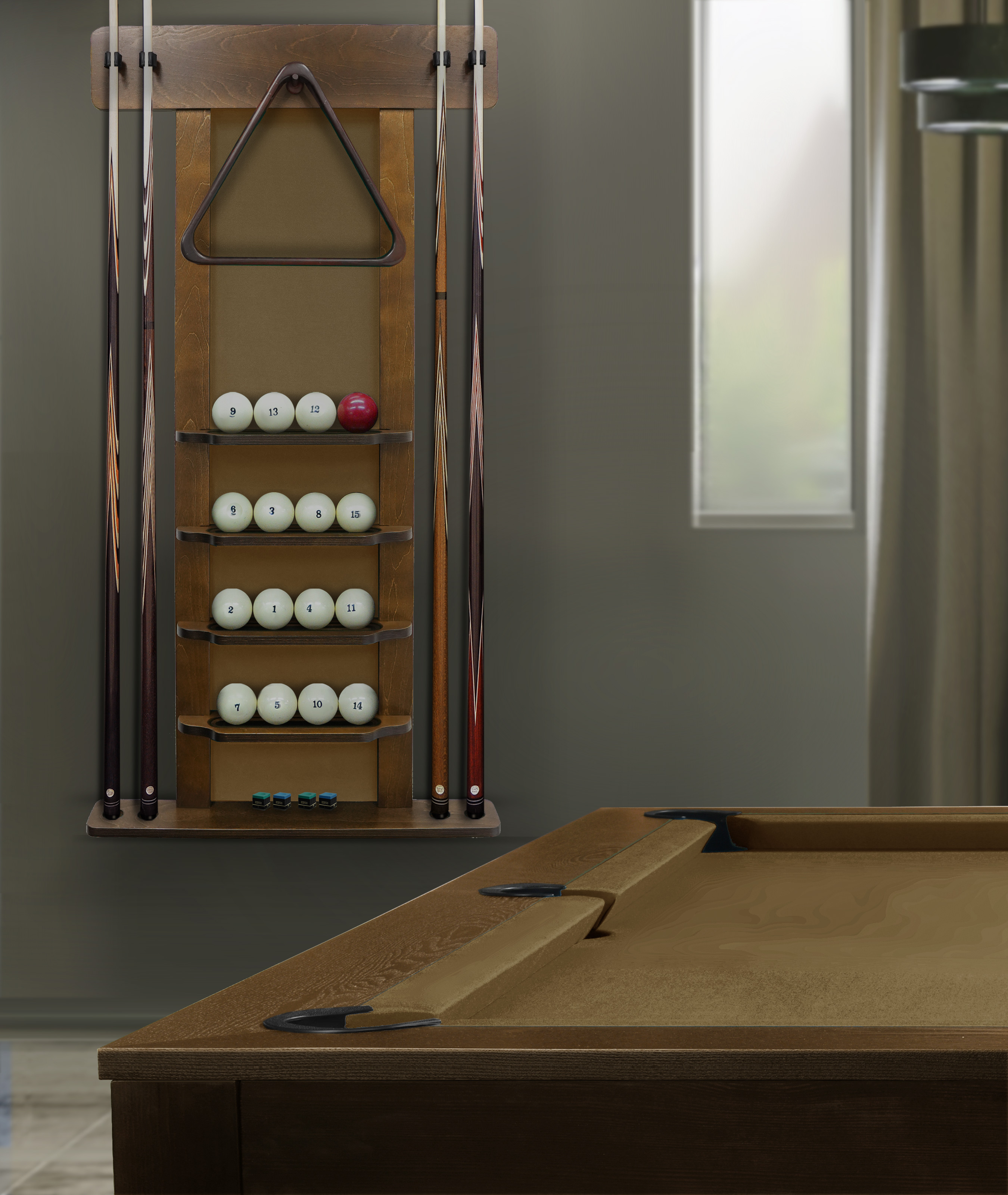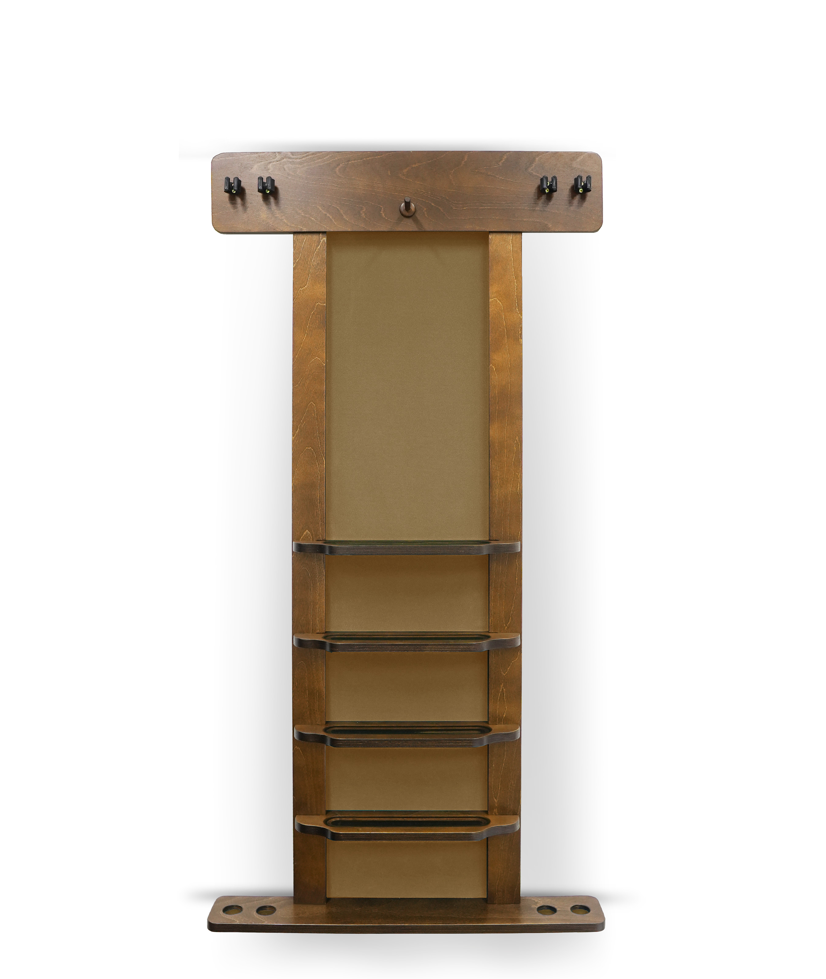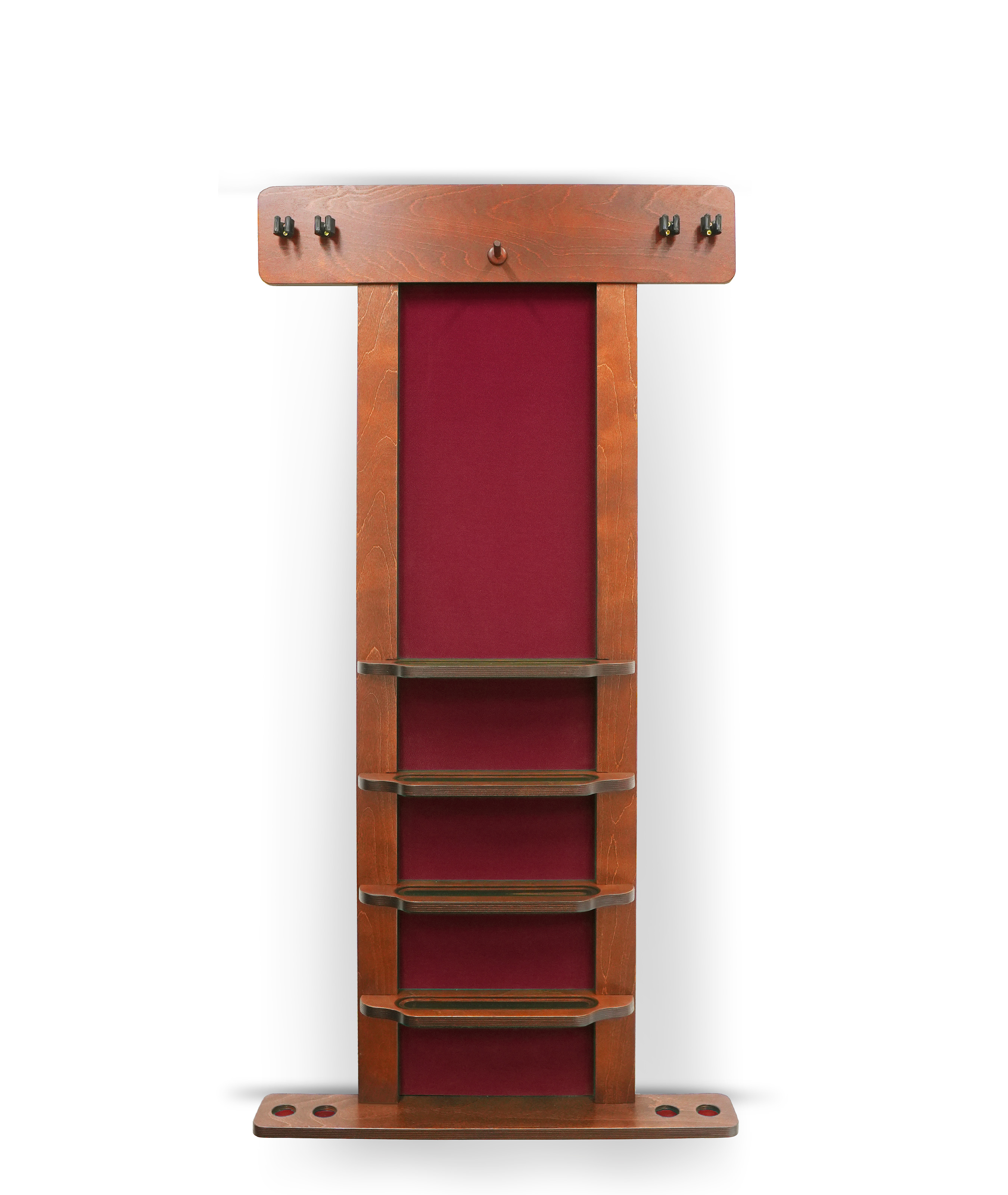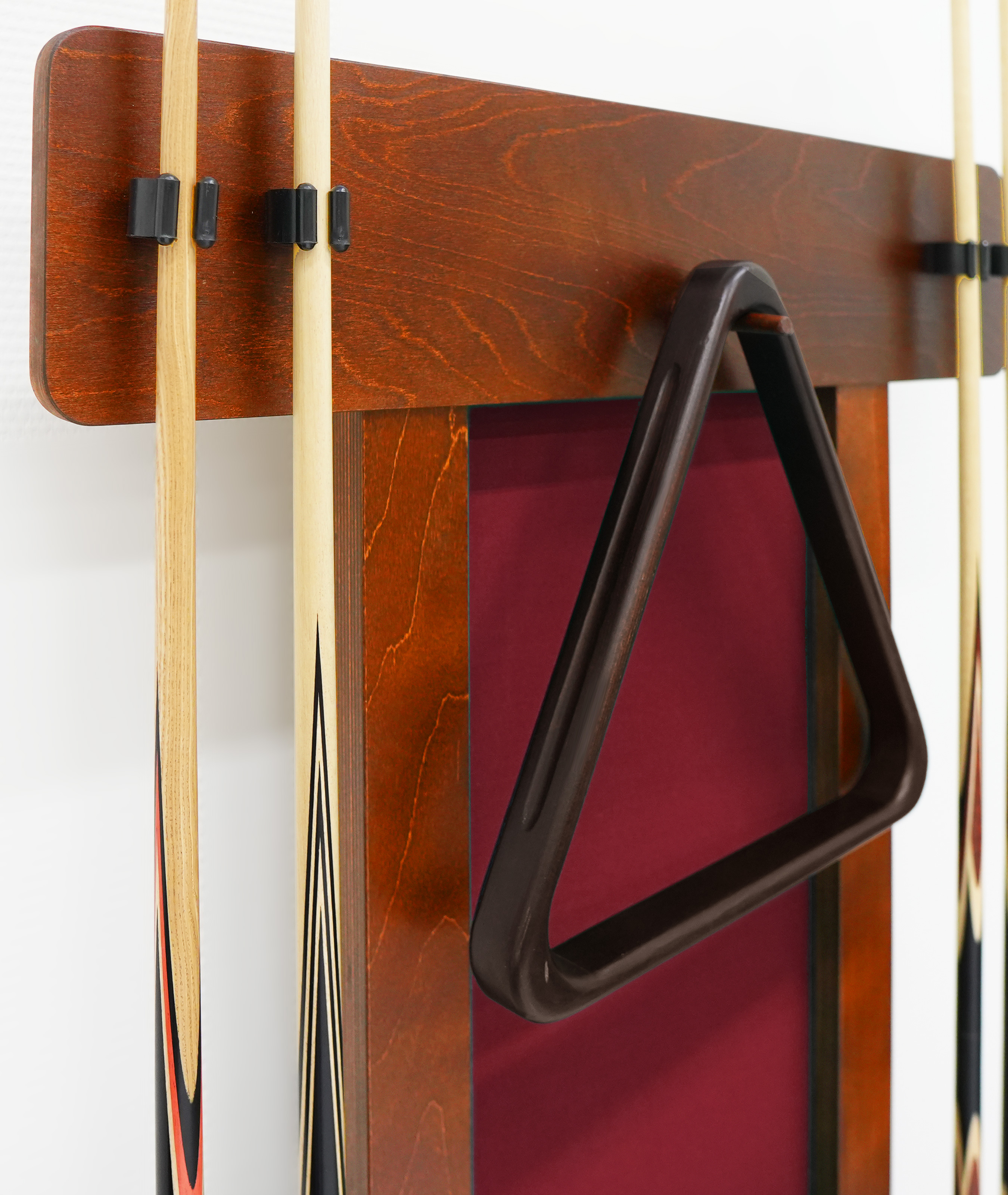 Киевница «Аталанта» — это идеальное сочетание функциональности, надежности и элегантного дизайна для бильярдной комнаты, клуба или игрового пространства. Модель изготовлена из высококачественной фанеры, обеспечивающей прочность и долговечность. Стенка и внутренние отделения для установки киев выстланы сукном, которое надежно фиксирует кии и бережно защищает шары от сколов и царапин. Благодаря настенному размещению киевница «Аталанта» экономит ценное пространство в помещении, оставляя игровую зону свободной. Четкие линии, классическая форма и богатая палитра выкрасок делают киевницу не просто аксессуаром, а частью интерьера. «Аталанта» позволяет разместить все необходимое для комфортной игры: 4 кия, полный комплект шаров, треугольник и мелкие аксессуары для игрока. Дополните бильярдную зону предметом, демонстрирующим серьезный подходе к игре и чувство стиля. Настенная киевница «Аталанта» — идеальное решение для домашних бильярдных комнат, частных спортивных клубов и баров.