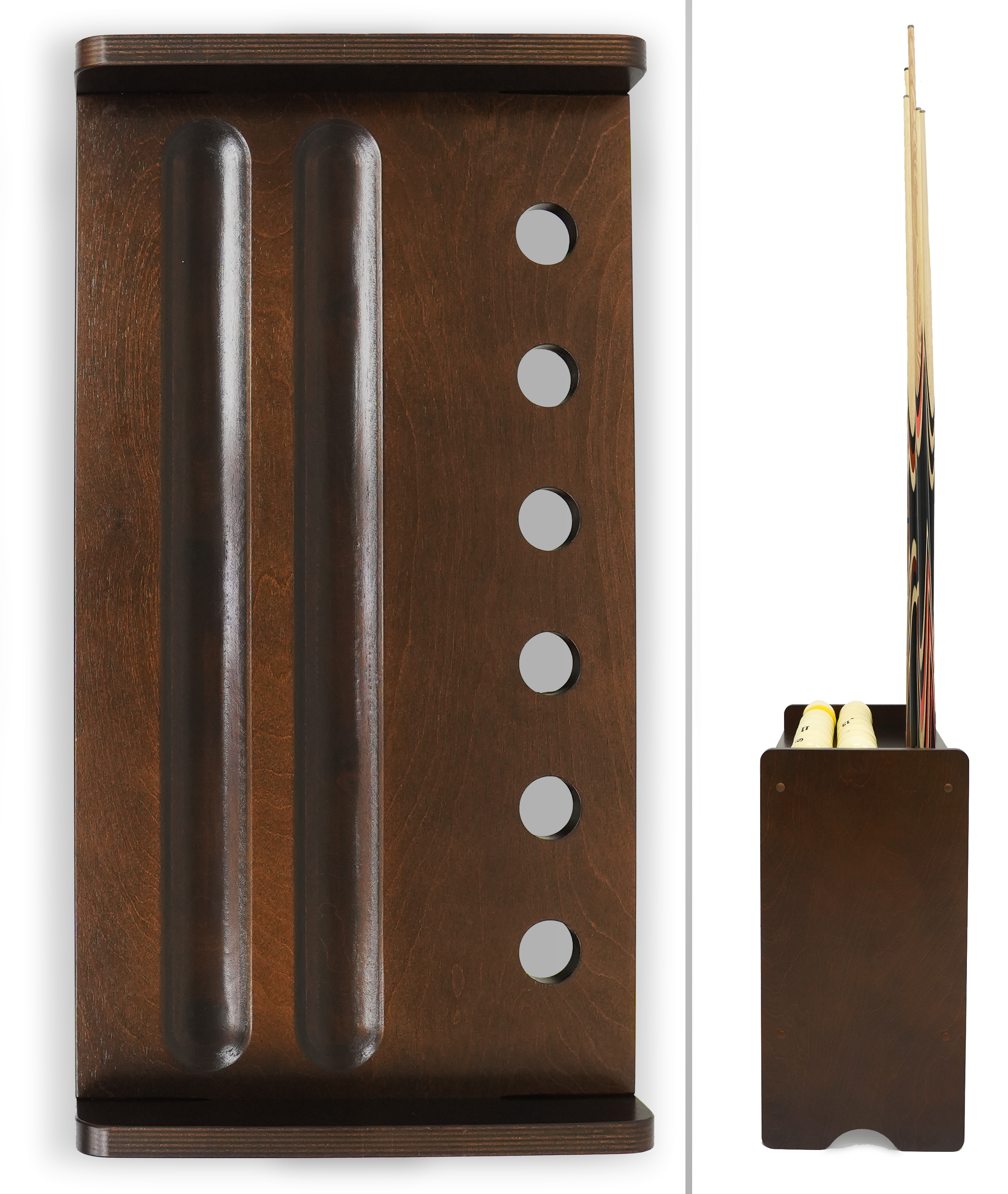 Киевница «Атриум» — это гармоничное сочетание функциональности, надежности и современного дизайна. Модель создана для тех, кто ценит порядок и стиль в игровой зоне, будь то домашний бильярдный зал или профессиональный клуб. Киевница изготовлена из высококачественной фанеры, что обеспечивает изделию долговечность и устойчивость к деформации. Компактная и устойчивая напольная модель не требует дополнительной фиксации и подходит для размещения вблизи бильярдных столов. Продуманная конструкция киевницы вмещает 6 киев, а также полный комплект шаров, треугольники и мелкие аксессуары. Все всегда под рукой и в идеальном порядке. Чистые линии, лаконичная форма и богатая палитра цветов делают «Атриум» стильным элементом интерьера, позволяя легко интегрировать в любую игровую зону. Модель поставляется в разобранном, компактном виде. Благодаря простой конструкции, со сборкой киевницы справится любой в считанные минуты. Напольная киевница «Атриум» — идеальное решение домашних бильярдных комнат, спортивных баров и клубов, офисных рекреационных зон. «Атриум» — это не просто мебель, это законченный функциональный акцент игровой территории, который говорит о внимании к деталям и любви к игре.