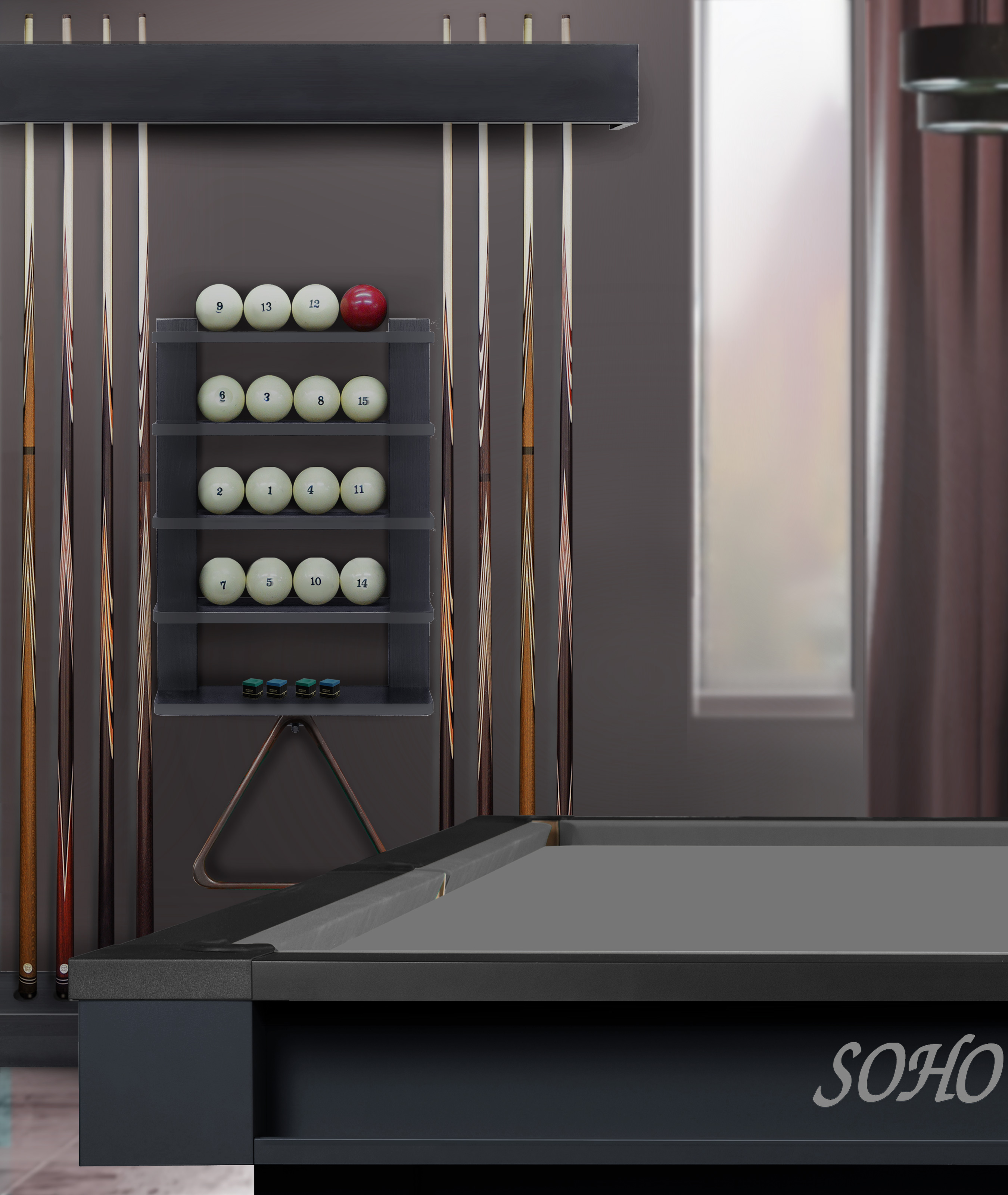 Киевница «Фрейм» — это элегантное и практичное решение для хранения бильярдного инвентаря. Сочетание натуральных материалов и продуманной конструкции делает её не просто аксессуаром, а стильным элементом интерьера игровой комнаты, бара или гостиной. Модель выполнена из высокопрочной древесноволокнистой плиты и сосны в лаконичном дизайне и акцентом на точной геометрии. Такое сочетание материалов делает изделие легким, но исключительно прочным. Конструкция модели позволяет настроить положение составных частей и общий размер киевницы под индивидуальные пожелания владельца. Благодаря настенному размещению киевница не занимает игровое пространство, при этом вмещает всё необходимое: 8 киев, полный комплект шаров, треугольник и мелкие аксессуары. Модель доступна в широкой гамме цветов — от светлых натуральных оттенков дерева до плотного современного покрытия эмалью из коллекции SOHO. Идеально подойдет для ценителей бильярда, владельцев домашних игровых комнат, баров, клубов, отелей и корпоративных пространств, где важны порядок, стиль и функциональность. Сделайте игровую зону безупречно организованной и эстетически привлекательной с киевницей «Фрейм»!