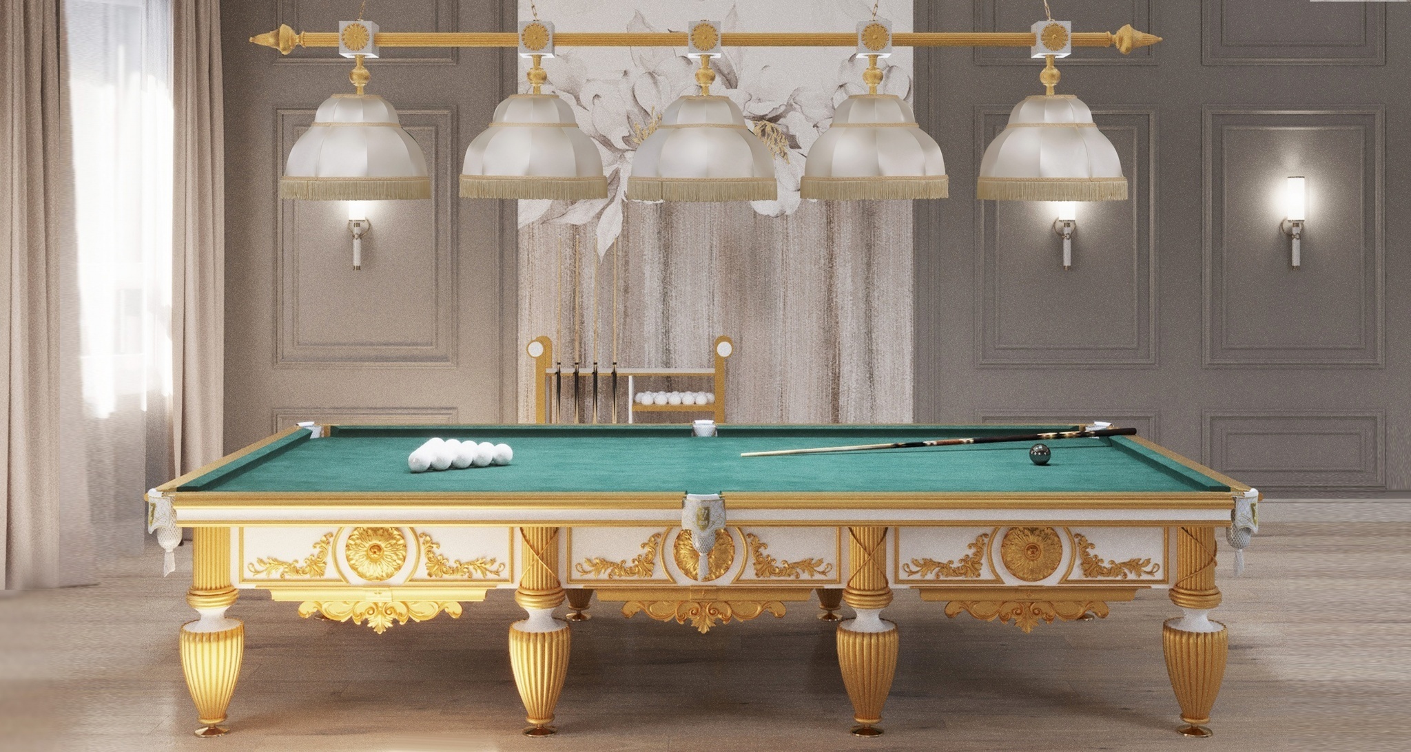 Светильник «Антика» – эталон изысканности для бильярдного помещения с роскошным интерьером. Модель выполнена из граба. Авторская выкраска Blanco Plumon. Конструкция включает в себя 4 плафона, сделанных из бархата, цвет которого представлен в 5 вариантах. Создан индивидуально под бильярдную коллекцию одноименной серии. Бильярдные коллекции Фабрики «Старт» – это уникальная галерея шедевров, которые создаются под изысканные интерьеры. Все представленные эксклюзивные светильники можно купить в любом фирменном салоне Фабрики, в розничных магазинах обширной дилерской сети «Старт», а также с помощью оформления заказа и онлайн-платежей непосредственно с сайта Фабрики «Старт». Светильник представлен 3D моделью, реальное изделие допускает расхождение в мелком декоре.