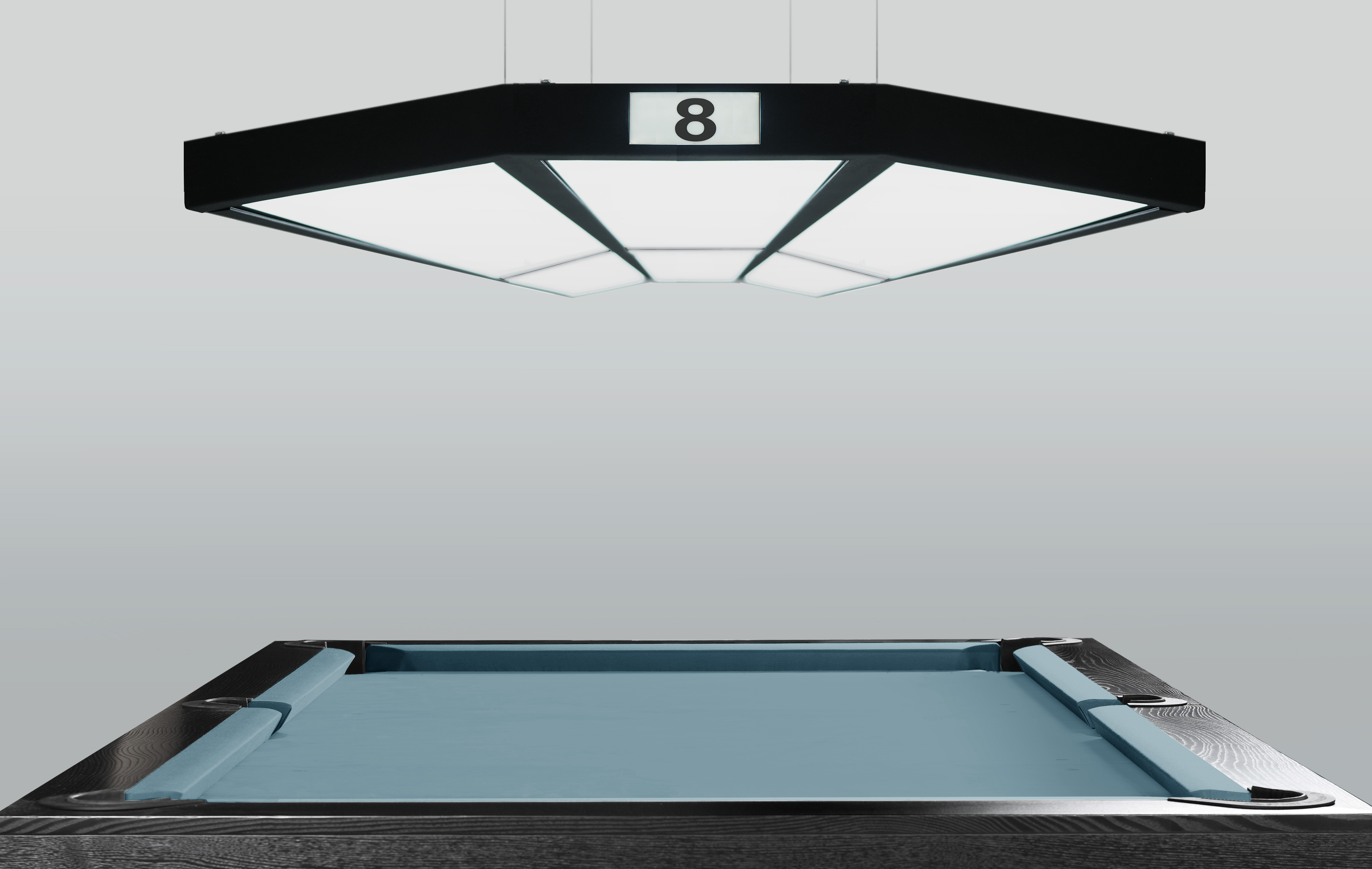 Шесть световых панелей создают сбалансированный поток, полностью лишенный теней и бликов. Свет равномерно покрывает всю поверхность стола размером от 9 до 12 футов.