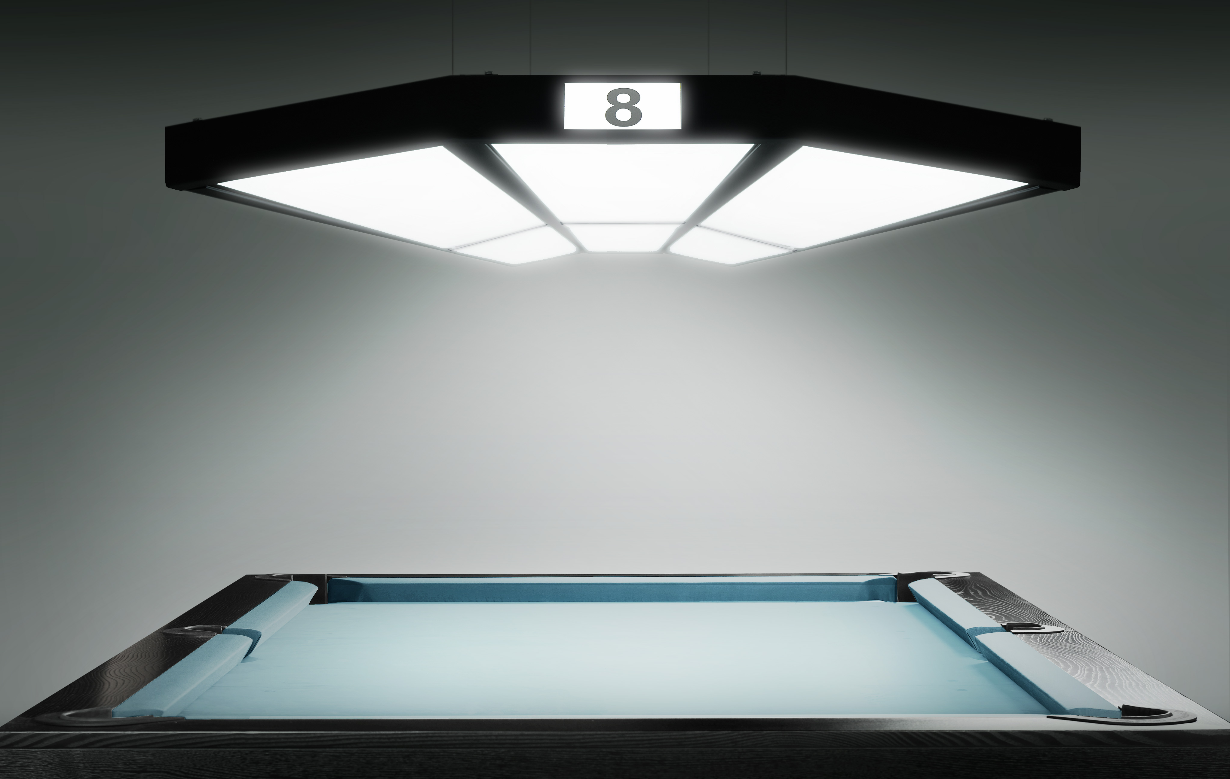 В комплекте предусмотрена номерная табличка, интегрированная в узкий торец лампы — важный функциональный элемент для коммерческих клубов. Это решение выполняет навигационную функцию, позволяя легко идентифицировать стол издалека, что особенно удобно для бильярдных клубов.