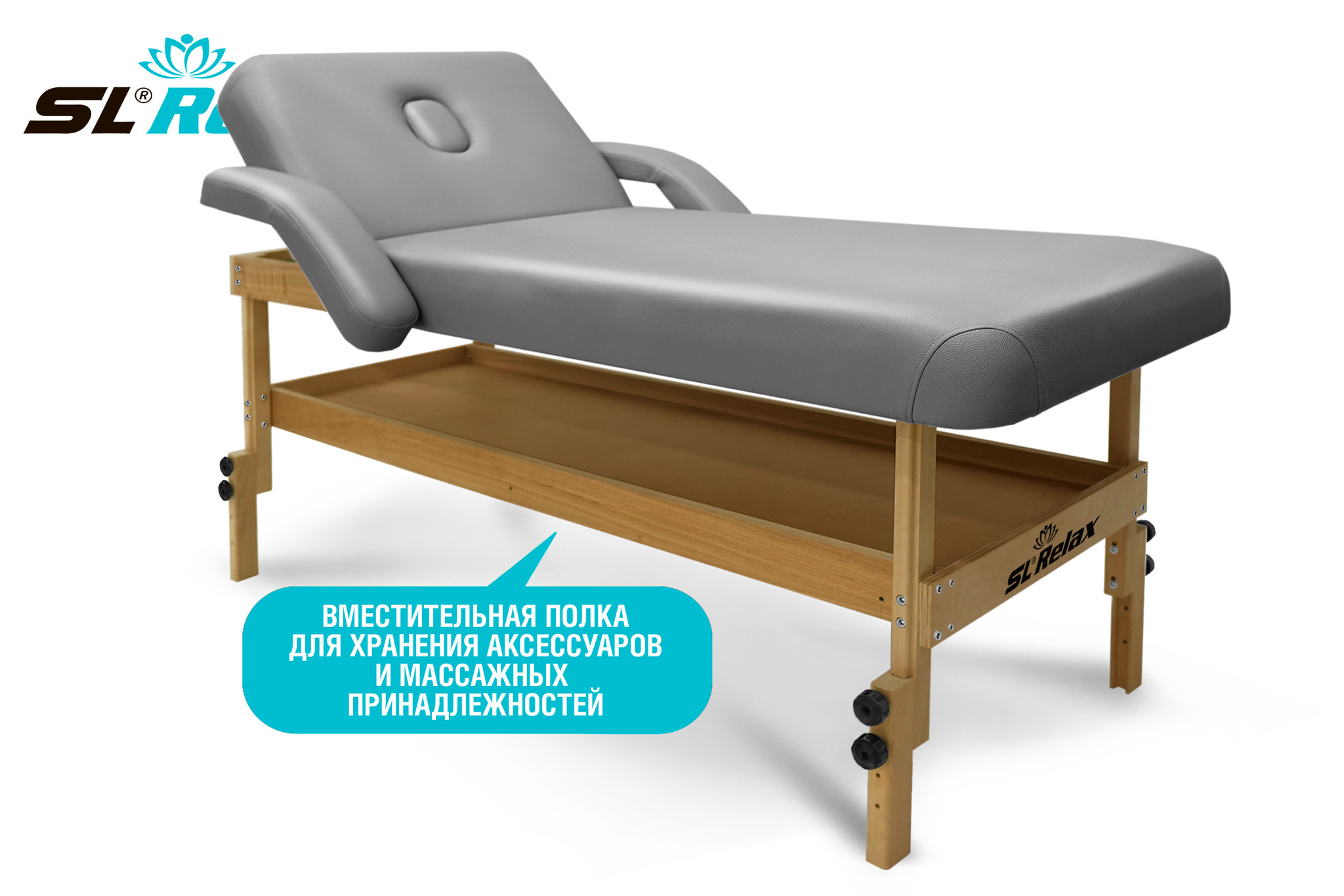 Профессиональный массажный стол Relax Comfort M создан на базе успешной модели Relax Comfort с улучшенной конструкцией и дополнительными элементами комфорта в виде подлокотников и подушки. Эта модель идеально подходит для профессионального массажа, обеспечивая максимальное удобство как для клиента, так и для мастера.nbsp;nbsp; Улучшенная конструкция модели подарит максимальный комфорт во время массажа спины, шеи и ног. Стол оснащен мягкими подлокотниками и подушкой для дополнительного удобства клиента. Регулируемый подголовник с механическим фиксатором позволяет настроить оптимальный наклон, а отверстие для лица обеспечит удобное положение головы при массаже спины и шеи. Устойчивые ножки и усиленная конструкция с функциональной стеллажной полкой для хранения аксессуаров выполнены из дерева повышенной прочности. Удобная полка позволит мастеру расположить рабочие принадлежности, такие как валик для массажа, полотенца, масла и прочее. Прочный деревянный каркас гарантирует долговечность и устойчивость.nbsp;nbsp;Обивка выполнена из влагостойкой PU кожи, благодаря чему поверхность стола можно легко продезинфицировать или очистить в случае появления загрязнений, сохраняя безупречный вид даже при интенсивном использовании.nbsp;nbsp;Для удаления загрязнений достаточно протереть поверхность стола мягкой влажной тряпочкой из микрофибры. Relax Comfort M – это усовершенствованная версия проверенной модели, которая удовлетворит потребности даже самых взыскательных специалистов и их клиентов.nbsp;nbsp; *Обратите внимание: оттенок обивки на фото может незначительно отличаться от реального.*