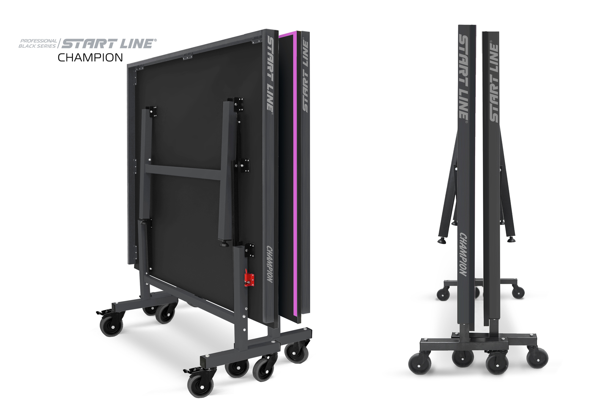 Теннисный стол Champion Black – это образец высоких стандартов и качества в мире настольного тенниса.nbsp;nbsp; Столы серии Champion – это первые российские теннисные столы, которые лицензированы и одобрены Международной Федерацией настольного тенниса #40;ITTF#41; для проведения соревнований высокого уровня. Столы Champion отвечают всем современным требованиям настольного тенниса и успешно зарекомендовали себя на многочисленных турнирах. Размер стола в рабочем положении: 274 см в длину, 152,5 см в ширину и 76 см в высоту, что соответствует стандарту ITTF. Черное основание и столешница с фиолетовой разметкой придают столу элегантный и современный вид, делая его идеальным выбором для оснащения спортивных клубов и собственного тренировочного пространства. Стол укомплектован столешницей из прочного материала ЛДСП толщиной 25 мм с многослойной, антибликовой покраской что обеспечивает предсказуемый контроль над ударами и высокий отскок мяча. Меламиновое покрытиеnbsp;nbsp;надежно защищает столешницу от появления трещин и сколов, а металлический кант 50x25 мм с полимерным покрытием и кромка из ПВХ 0,45 мм обеспечивают устойчивость и долговечность стола даже в условиях интенсивной эксплуатации. Обрезиненные колеса диаметром 125 мм на подшипниках гарантируют легкость перемещения. На каждой стороне стола установлено четыре колеса, два из которых оснащены тормозом, что гарантирует идеальную фиксацию и стабильность стола во время игры. Регулируемая высота боковых опор дает возможность адаптации стола к различным условиям, позволяя выставить идеальный уровень игрового поля даже на неровной поверхности. Механизм трансформации - собственная уникальная разработка Start Line.nbsp;nbsp;Сложить для хранения и разложить стол для игры без труда сможет один человек. Специальные фиксаторы позволяют надежно закрепить положение стола. Конструкцией предусмотрен режим одиночной игры PLAYBACK, который позволит тренироваться самостоятельно, отрабатывая навыки и точность ударов. Теннисный стол Champion Black – это идеальный выбор для профессиональных спортсменов,, стремящихся к высочайшим результатам и качеству.