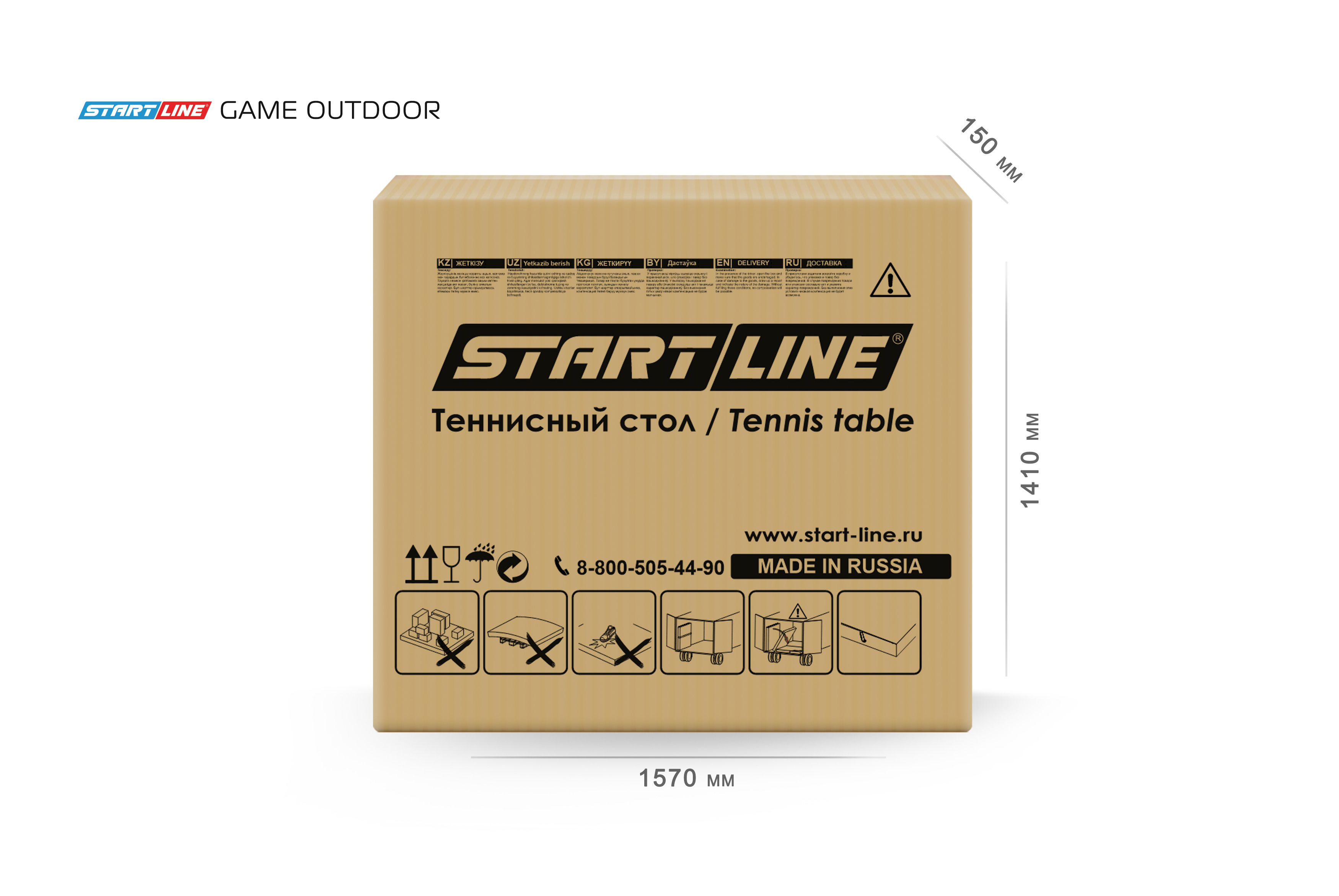Размеры стола в разложенном виде составляют 274 см в длину, 152,5 см в ширину и 76 см в высоту, что соответствует стандарту ITTF.